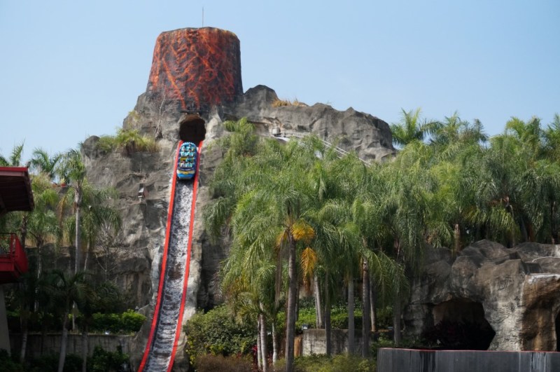 Volcanoes are popular in the amusement park business. Movie Park’s volcano houses some aliens, Gardaland’s version is the eye-catcher of a stunning rapid river and at Tokyo DisneySea, the volcano even acts as the park’s symbol. Discovery World features a volcano as well, but unfortunately it isn’t nearly as impressive as its cousin at DisneySea. Discovery World’s version is home to Volcano Adventures, a classic flume ride. The layout is clearly inspired by Wild West Falls Adventure Ride at Warner Bros Movie World in Australia. The first descent has the same airtime-filled surprise and the final drop feels similar. Theming is rather limited (I really missed some special effects inside the mountain) but all in all Volcano Adventures turned out to be an excellent water ride.
