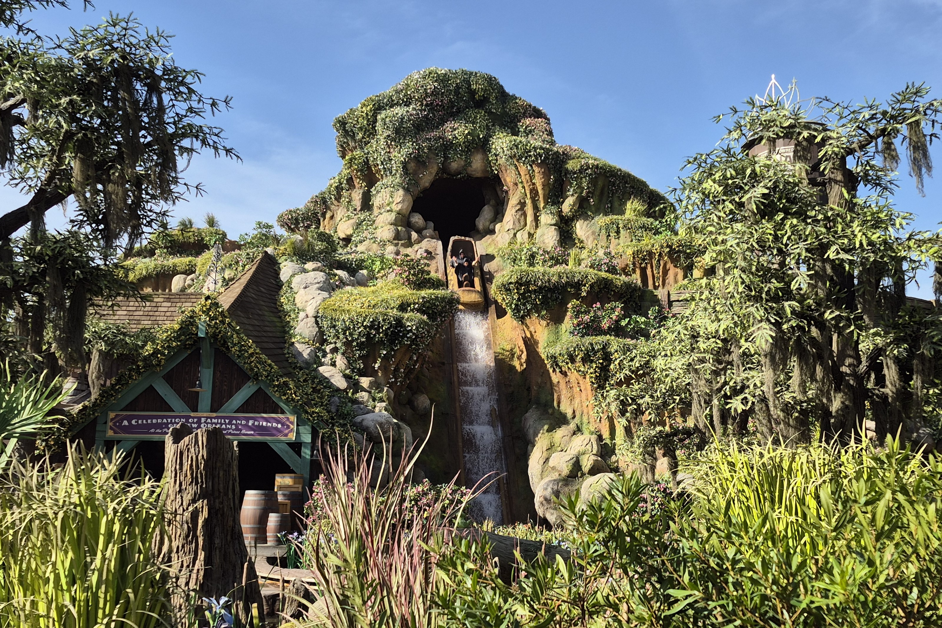 Bayou Country is Disneyland’s newest themed land and it also contains the newest attraction. Yet that is relative in both cases. In fact, Bayou Country is the new name of the old Critter Country and Tiana’s Bayou Adventure reuses the ride hardware of Splash Mountain. The theming of this 1989 log ride had become somewhat controversial, so I find it positive that they opted for an update of the decors. I’m also very glad Disney chose Princess and the Frog. The music always was an integral part of the Splash Mountain experience and the Princess and the Frog soundtrack certainly isn’t inferior. Besides, we are impressed by the beautiful exterior, the world-class audio animatronics and the long ride duration. However, if I may mention one drawback… Tiana’s Bayou Adventure is too wet. Despite the fact that we armed ourselves with jackets and ponchos, we were soaking wet after our ride. After the two tallest drops, water literally pours into the boats from all sides. This is kind of acceptable on hot summer days, but spring and autumn can get pretty chilly here in Los Angeles. So… Tiana’s Bayou Adventure is almost perfect, but be prepared to continue your day with soggy shoes.