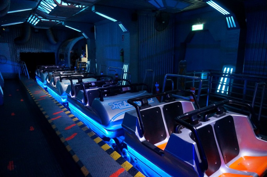 Surprisingly, Haunted Mansion isn’t the most creepy ride at Dream World. This title goes to Alien, a show with special effects. The attraction starts with a pre-show that explains the story line. In short: we are recruited as researchers and we will soon enter a lab with a dangerous alien monster’s eggs. We are assured that everything’s perfectly safe, but of course, this turns out differently. In the main show we then witness how an alien breaks its eggshell and manages to bypass all security systems. This is followed by a horror scenario in which light, air and sound effects simulate the presence of the creature. Does this all sound vaguely familiar? Then you may have visited Stitch’s Great Escape at Magic Kingdom at some point. This show had similar ingredients and even the seats (including awkward shoulder restraints) are identical. Although Dream World’s budget can’t be compared with Disney’s, I actually enjoyed Alien a lot. The attraction contains a number of strong effects and delivers a convincing overall experience. Please keep in mind that Alien is not for the faint of heart, due to its very dark nature.