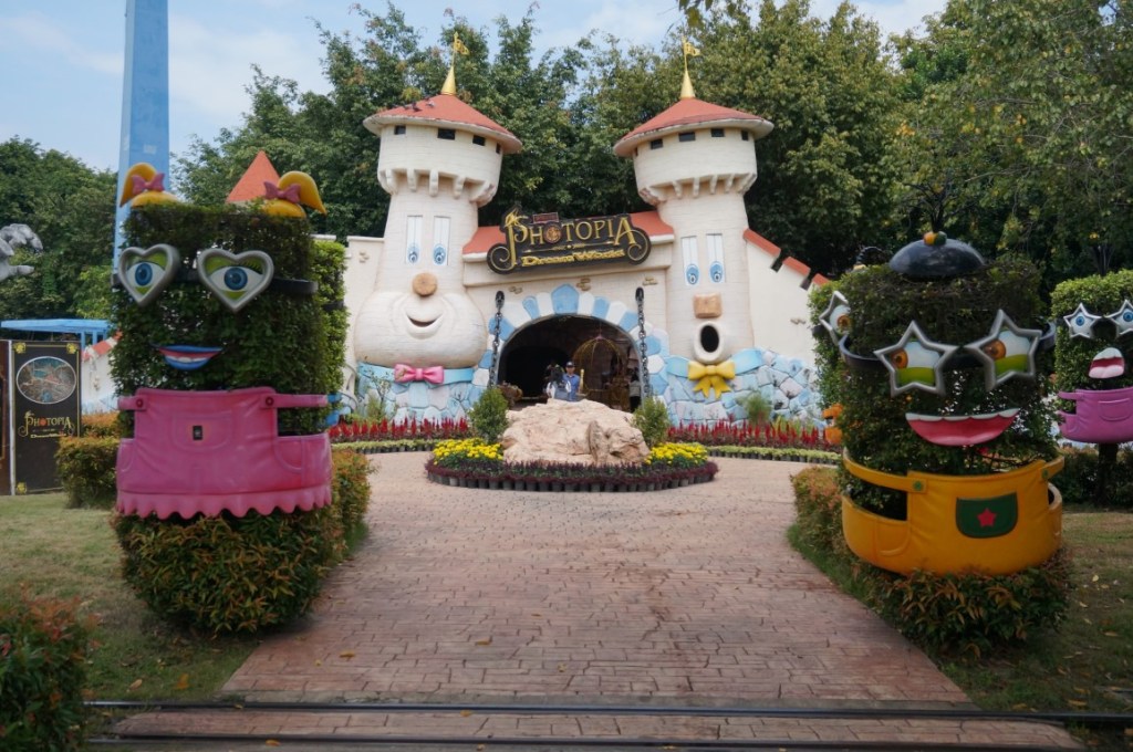 Some parts of Dream World reminded me of multiple well-known international theme parks. The park’s entrance, for example, shows striking similarities with the facade of It’s a Small World. Besides, there’s a Universal-like globe on the central square. A little further in the park, we also spot a copy of Parc Astérix‘s famous medieval gate, an talking tree like the one at Efteling and a budget version of Sleeping Beauty Castle. These decorative elements are all part of Photopia, a garden filled with photo opportunities. This part of the park is especially popular with Instagram queens and vloggers.