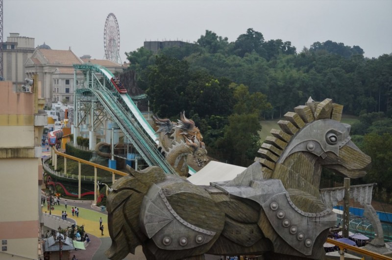 Most Europeans and Americans probably don’t know E-DA World, but it’s popular destination for Taiwanese people. They stay at the luxurious E-DA Royal Hotel, they go to the movies at the E-DA Cinema, they enjoy a show at the E-DA Royal Theater and they spend their dollars at the E-DA Outlet Mall. This huge shopping centre is the heart of the resort and it connects all other parts. As if that wasn’t enough, a giant Ferris wheel was placed on top of the mall. E-DA World actually feels like a Taiwanese version of Lotte World in South Korea. It’s an entertainment hub that caters to a very broad audience. The main reason for our visit isn’t the mall or the cinema, but E-DA Theme Park.