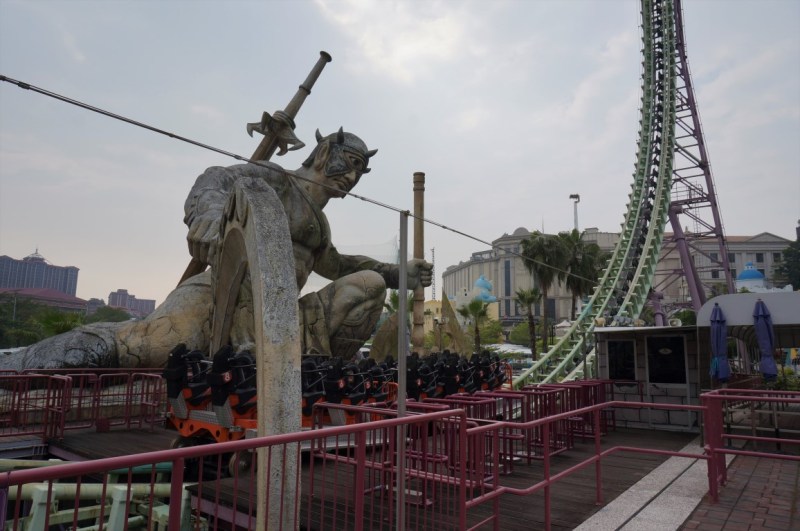 Another surprising attraction in the Trojan Castle is Dark Ride. Logically, you’d expect… well, a dark ride. But in fact, this is a Junior Coaster built by Vekoma. It seems as if E-DA World got inspired by Disney, because some decoration elements were clearly based on Journey to the Center of the Earth at Tokyo DisneySea. It’s obviously nonsense to compare a Taiwanese family roller coaster with one of the best Disney rides ever, but Dark Ride is an excellent experience nevertheless. This was a smooth coaster with a good layout and some nice lighting effects. Although I definitely don’t consider it as the world’s best indoor roller coaster, Dark Ride exceeded all my expectations. Don’t miss it.