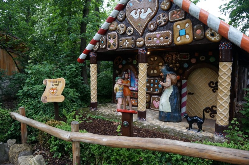 Familypark’s theming level is surprisingly high. One of the nicest themed (but rather odd looking) areas is the Märchenwald. Just like Efteling and Europa-Park, Familypark has its own fairy tale forest. Obviously, the Austrian version doesn’t even come close to Efteling’s famous Fairy Tale Forest. Even the questionable Märchenwald at Europa-Park is themed in a better way, but the atmosphere is just right here at Familypark. That atmosphere is partly generated by not-so-fashionable Hansel and a Little Red Riding Hood which appears to live in a red lights district.