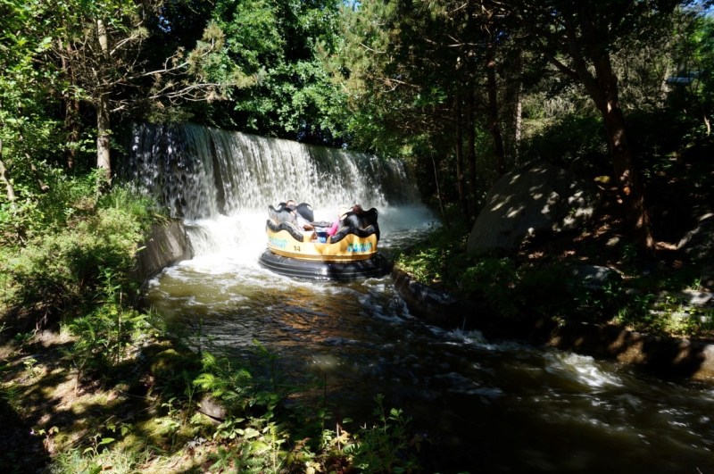 More water-based fun can be found at Fårup Rafting and Træstammerne, a rapid river and a classic log flume respectively. They aren’t particularly tall or unique, but both rides are fairly long and they have been nicely integrated in the natural environment. Fårup Rafting can hardly be seen from the pathways, which certainly adds to the excitement once on board. Although decoration is limited to an absolute minimum, this is a very solid attraction. The fact that we exited this raft ride almost entirely dry seemed a good thing with temperatures around 20°C. Unfortunately, the log flume got us soaked anyway. Træstammerne offers three drops and the second, smallest splashdown happens to be very wet. So please skip this one if you’re afraid of water. Due to the lack of theming, this ride is kind of uninteresting anyway.