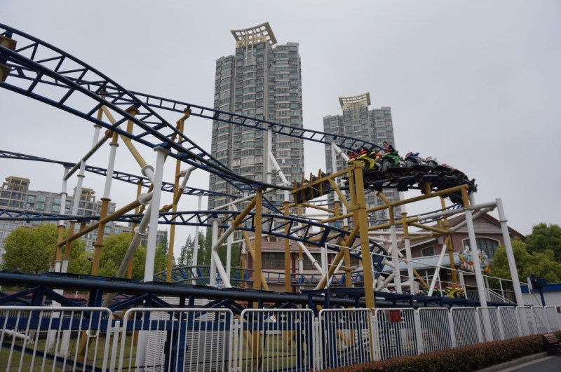 Jin Jiang Action Park’s third and final roller coaster was also manufactured by Zamperla. Moto Coaster is similar to a ride at Särkänniemi in Finland, so I know what to expect (oh well… actually you never know what to expect from a Chinese amusement park). Honestly, Moto Coaster isn’t bad at all. The acceleration is powerful and most parts of the track are pretty smooth. I still prefer Shanghai’s other motorbike coaster, though. Something called… TRON?