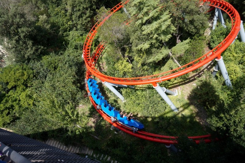 Don’t expect the biggest thrills at Tibidabo; you’ll have to take a train to PortAventura for that. Even the park’s signature roller coaster Muntanya Russa is a family-friendly experience. The ride is fun and surprisingly fast, though. Tibidabo’s other coaster, a powered coaster built by Zamperla, is a lot less interesting than its neighbour. The ride is simple, slow and boring, but those Spanish tourists seem to love it. Strange people…