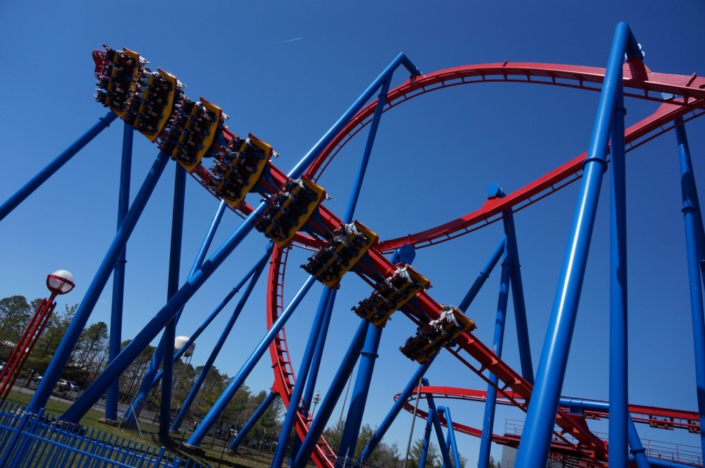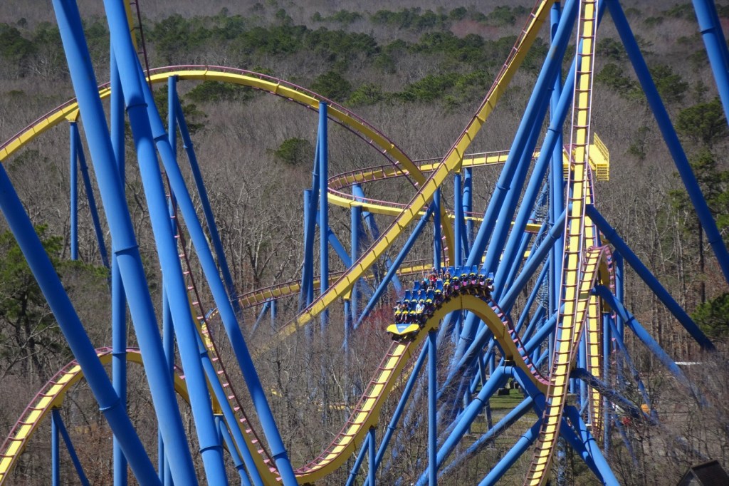 Inevitable in any Six Flags-related article: a few paragraphs about the characters from the DC universe. At Six Flags Great Adventure, the DC attractions weren’t placed together, but they’re scattered throughout the park. At the end of Main Street, for example, is The Joker, a 4D Free Spin Coaster by S&S. I’ve ridden multiple versions, but I’ve never loved snappy twists that are typical for this standard coaster. Further down the road, you’ll find Superman – Ultimate Flight, another off-the-shelf coaster. The layout of this B&M flying coaster includes an intense pretzel loop, but that’s the only noteworthy element. Consequently, I wouldn’t count Superman among the park’s top attractions. Still, that doesn’t mean that the line for this attraction is always short. Six Flags didn’t install a dual loading station for this version, which results in a dramatically low capacity. Be sure to ride Superman as early as possible, if you’re visiting on a busy day.