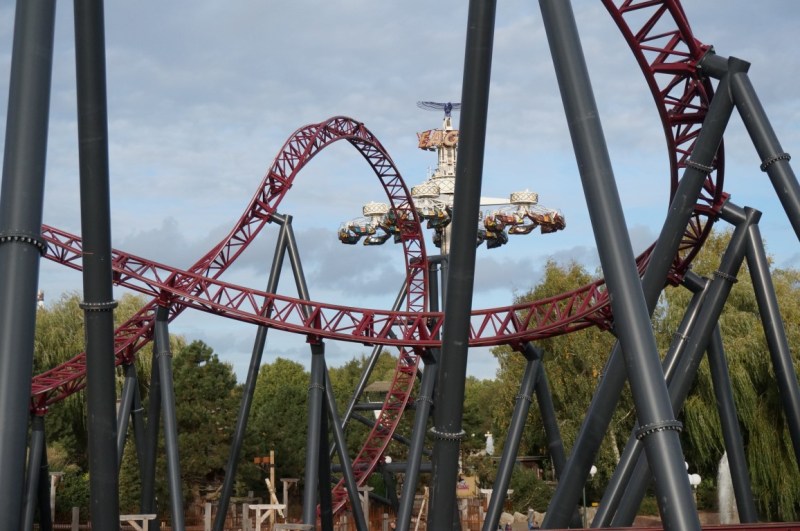 We visited Slagharen on a chilly October day, so I wasn’t really interested in water attractions. However, the visitors who wanted to get wet could opt for a ride on Ripsaw Falls. This log flume has two drops and theming is simple, but it fits perfectly in the park’s ride collection. Slagharen’s second water ride is Expedition Nautilus. Have you ever ridden a classic tea cups ride in an artificial pond with water guns? I haven’t and things won’t change here at Slagharen. This Twist ‘n’ Splash built by Mack Rides remains closed today. That seems logical with these cool autumn temperatures.