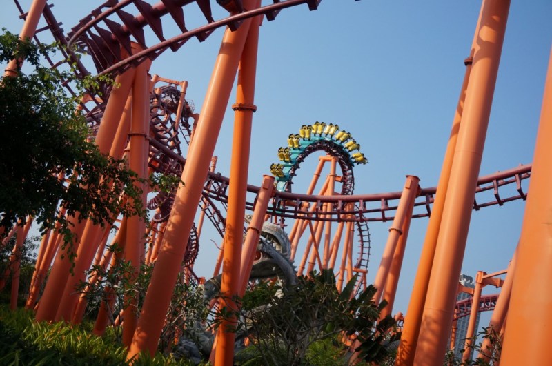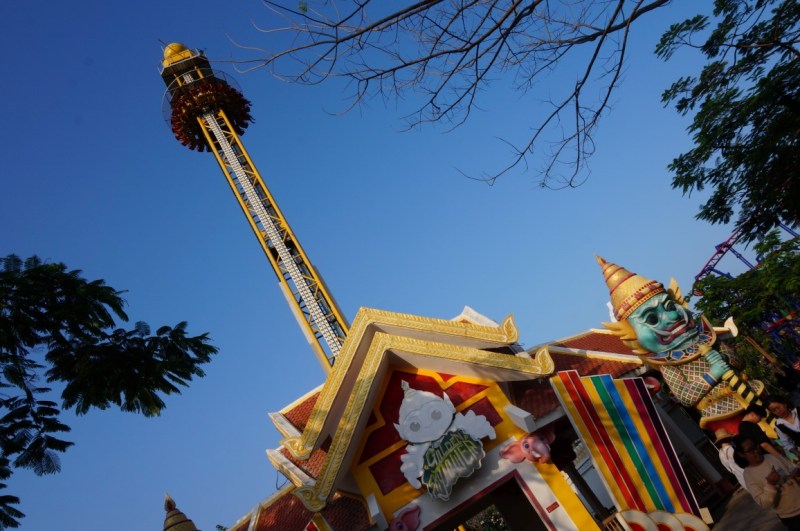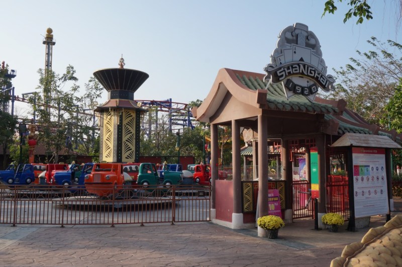 The Thai area is home to some giant coloured elephants and Golden Sky Tower, a free fall ride that seems to belong on a funfair. The adjacent Singaporean zone has the same cheap appearance. Still, I should praise Sun World for naming one of the rides Singapore Sling. Naming a ride after a cocktail, that’s awesome! I already had ideas for Mojitonnerre De Zeus, Nitro Negroni and Bloody Marienkäferbahn, but no amusement park ever had the courage to do something similar. By the way… Singapore Sling might actually make its passengers slightly drunk. This is a frisbee-like looping machine, so I decided not to ride.