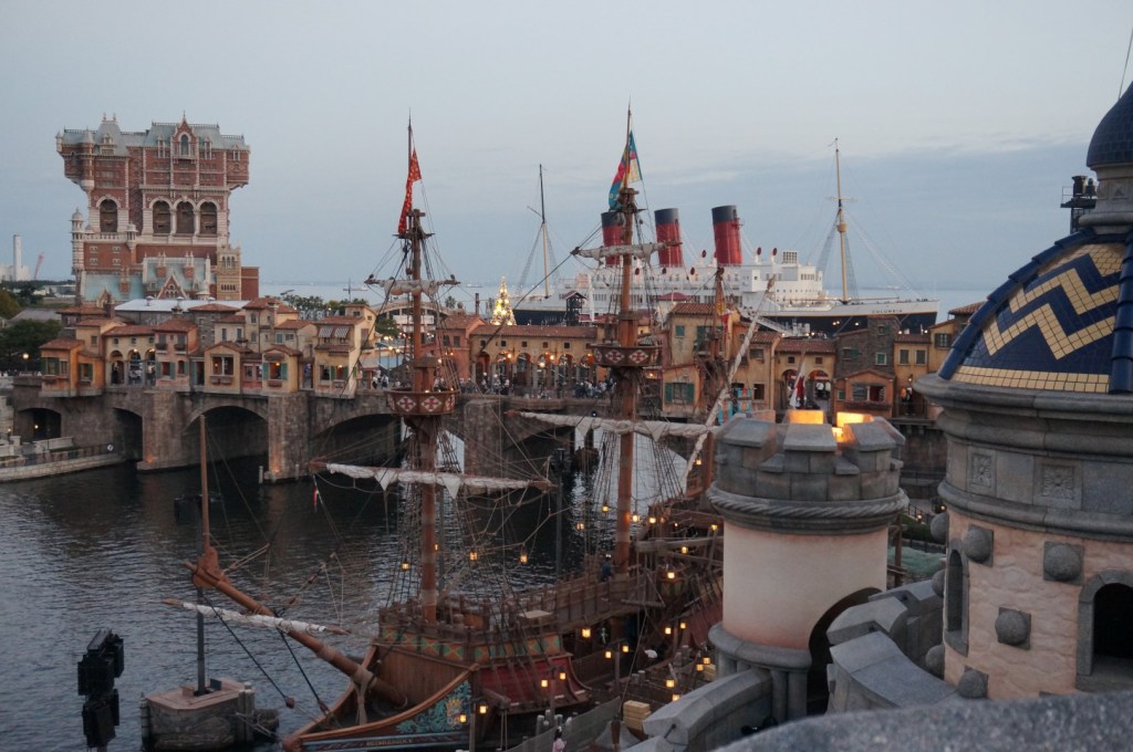 As you might expect at DisneySea, water is never too far away. There are quite a few ships docked at New York Harbor and the most iconic of them is the S.S. Columbia. This is probably one of the craziest ideas Disney Imagineers ever developed: building a Titanic-like ship and integrating an upscale restaurant and a cocktail lounge in it. S.S. Columbia is pure decadence, but exactly these kinds of splurges transform DisneySea into a world of superlatives. Be sure to pop in for a lunch at the S.S. Columbia Dining Room or a cocktail at the Teddy Roosevelt Lounge. Theme parks with a cocktail bar always steal my heart.