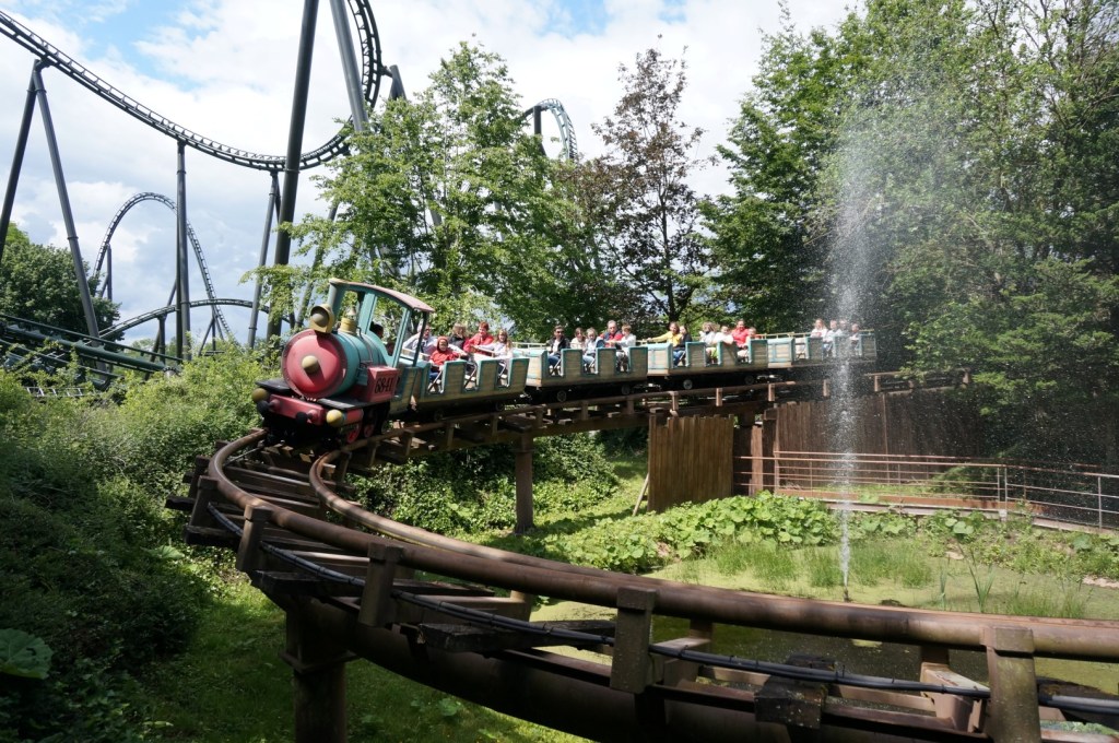 The neighbouring Flash Back was also built by Mack Rides, but it’s approximately 20 years older than Pulsar. This log flume differs from most other versions when it comes to theming. The ride isn’t themed to a sawmill or the Far West, but it received a more industrial-looking theme. Flash Back has a long layout with three descents and especially the final double-down drop is surprisingly fun. The park’s third water ride can be found in Karma World, one of the recently refurbished lands. Karma World is based on the spirit and exoticism of Bollywood. The area’s most popular attraction, however, didn’t receive a big makeover. Radja River got a new entrance sign, but everything else remained unchanged. That’s not necessarily bad. This is one of Europe’s largest rapid rivers and it also has one of the most spectacular finales on such a ride. Right before the final lift hill, boats pass through a tunnel of water before crashing into a huge tidal wave. This series of water effects ensured that I exited the ride soaked.