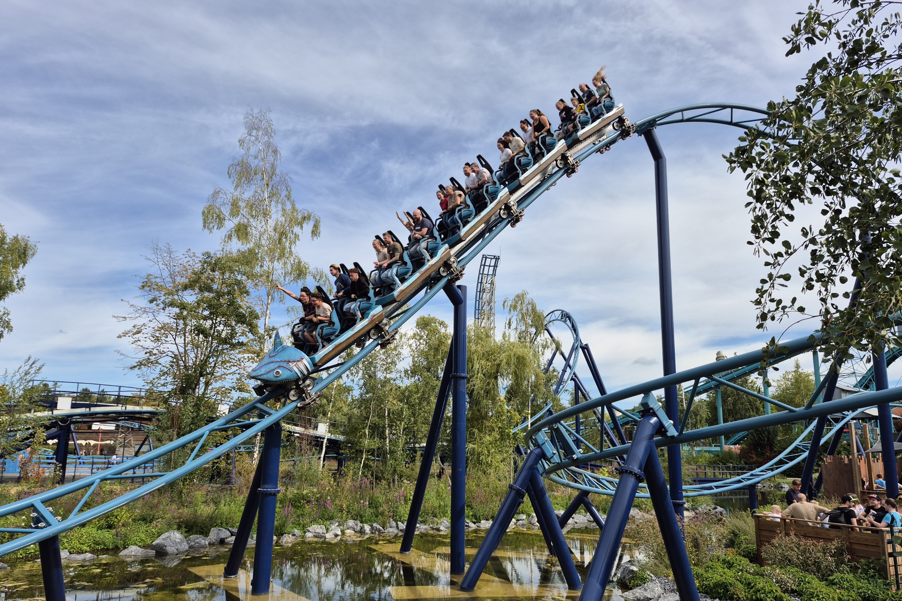 Ever heard of a steel shark called Mecalodon? Well, this is the latest addition to Walibi’s coaster lineup. The ride can be found in a brand-new themed land called Dock World, which was built around the fictional Port of Wavre. The theming around the queue and station is quite impressive and Mecalodon has some interaction with the nearby Tiki-Waka. And the ride itself? Well… it’s pretty good! Mecalodon is the prototype of Gerstlauer’s Airtime Coaster, but that name may cause unrealistic expectations. I’d rather describe it as a family-oriented multi-launch coaster. The layout consists of three accelerations and lots of snappy curves, but I’m actually most impressed by the remarkable smoothness. I don’t know how they’ve done it, but Gerstlauer created one of the most comfortable coaster experiences in Europe.