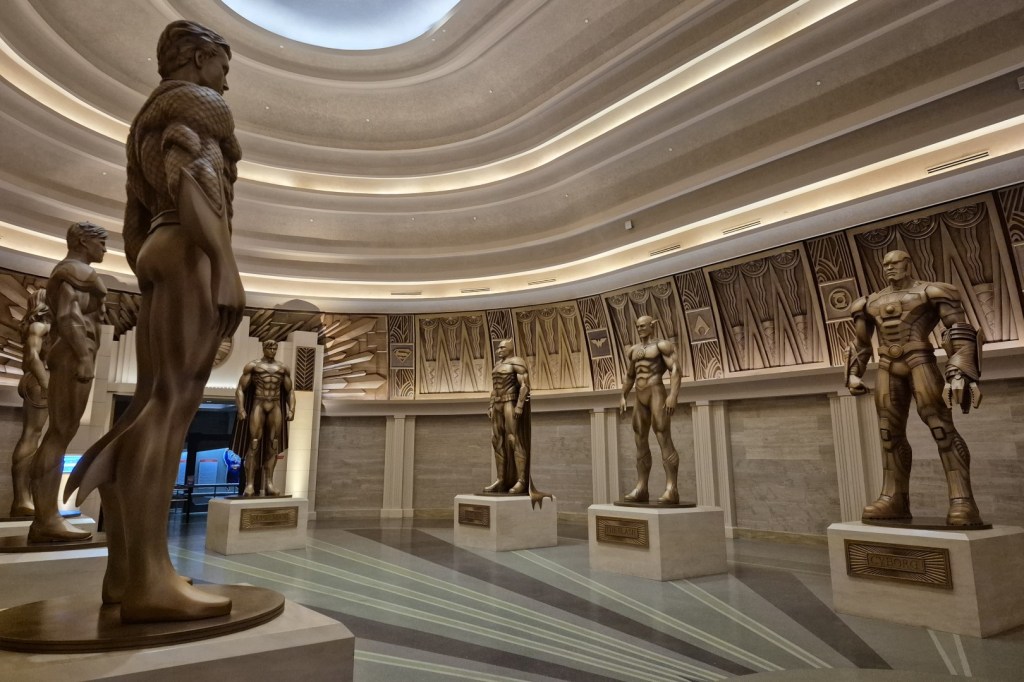 Greetings from the United Arab Emirates, one of the hottest travel destinations on the planet. Luckily, the tourist paradise of Yas Island offers multiple ways to escape the heat. You could spend an entire day at the air-conditioned Yas Mall, you could have some splashing fun at Yas Waterworld or soak up the Swedish atmosphere at a local Ikea. I really don’t care for shopping, swimming or Scandinavian furniture, but amusement park enthusiasts aren’t forgotten. Yas Island is actually home to two three large-scale parks: Ferrari World, SeaWorld and Warner Bros World Abu Dhabi. All of these parks are (mostly) indoors and the air-conditioning creates an ideal ambient temperature. Warner Bros World opened in the summer of 2018, so it’s relatively new. The exterior facade is still shiny and the entrance gate looks stunning. Thanks to its spacious security check and the many ticket booths, it actually feels like I’m entering an airport. Some may find it a tad too clean, but it has an undeniable grandeur and the impressive film soundtracks fit perfectly. My first impressions are excellent and I’m expecting Warner Bros World to blow my mind a couple of times today.