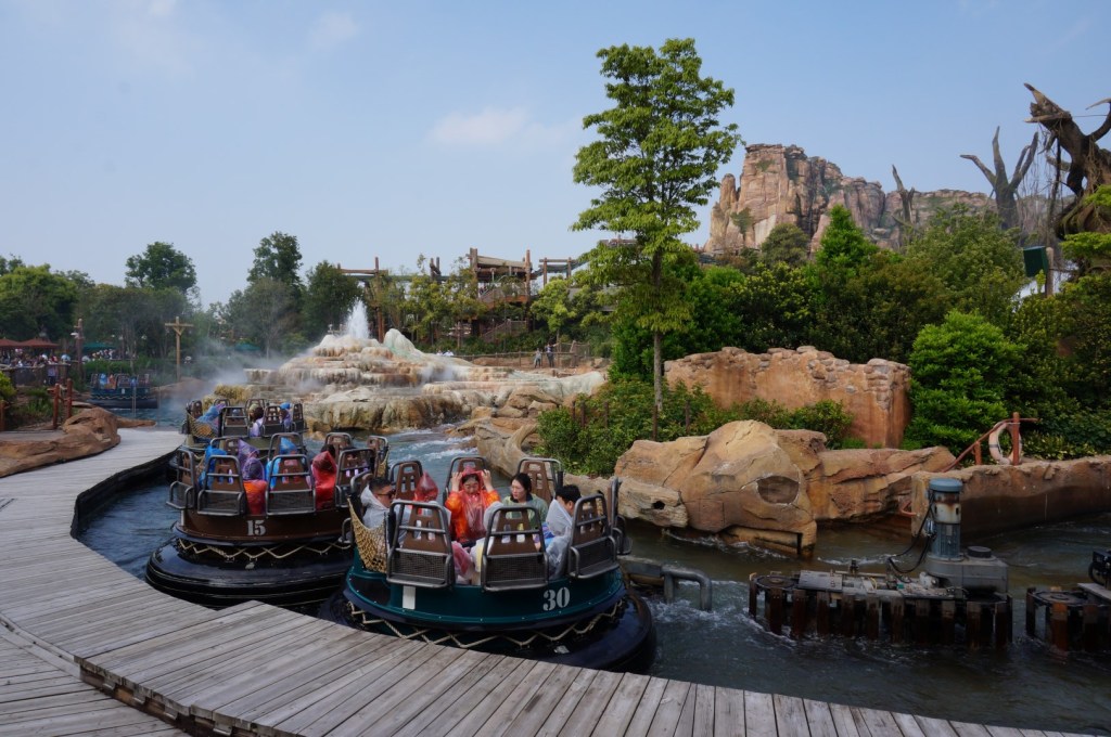 Roaring Rapids opende in juni 2016, tezamen met de rest van Shanghai Disneyland. De lay-out van deze rapid river werd duidelijk geïnspireerd op die van Grizzly River Run, al is het thema niet vergelijkbaar. Roaring Rapids speelt zich af in de jungles van Adventure Isle, in en rond de enorme Roaring Mountain. Een substantieel gedeelte van de rit vindt indoor plaats. Daar komen we oog in oog met Q’aráq, een angstaanjagende animatronic die een kruising van krokodil en dinosaurus lijkt. Dankzij deze indrukwekkende scène is Roaring Rapids veel meer dan een standaard raftingbaan; het is een totaalbelevenis die een verhaal vertelt. Ik beschouw deze ride dus als een must-do in Shanghai Disneyland, maar wees gewaarschuwd: wachttijden zijn doorgaans erg lang.