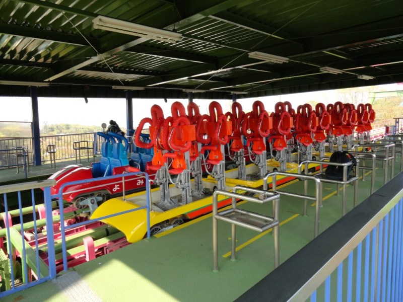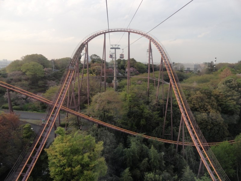 Yomiurland’s most unique roller coaster wasn’t Bandit, but Momonga Standing and Loop Coaster. It can easily be described as a two-in-one package. It’s one roller coaster, but it features two different experiences thanks to its double loading station. You get to choose between a standard sit-down train and a stand-up version. I guess it doesn’t count as a double coaster credit, but I really liked the fact that this ride could be experienced in two different ways. Bad news if you want to try it yourself, though: Momonga Standing and Loop Coaster was removed a few years after our visit.