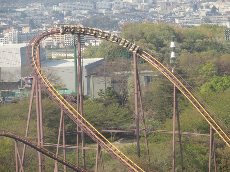 Yomiuriland doesn’t only feature Wan Wan Coaster Wandit (a kiddie coaster), but they have a few thrilling rides as well. The most recognisable ride of the entire park is Bandit, a hyper coaster from Japanese manufacturer Togo. This coaster is more than 1,500 metres long, it’s 51 metres tall and it’s got a top speed of 110 km/h. Good stats and the ride is beautifully integrated in Yomiuriland’s hilly landscape. On the negative side, it’s not the smoothest coaster on Earth and the restraints are kind of restrictive if you’re slightly taller than most local visitors. I’m happy that I’ve ridden Bandit, but one ride was definitely enough for me.